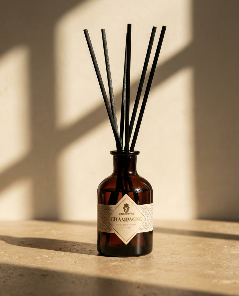 Hand poured reed diffuser with a non-toxic environment friendly diffusing base.