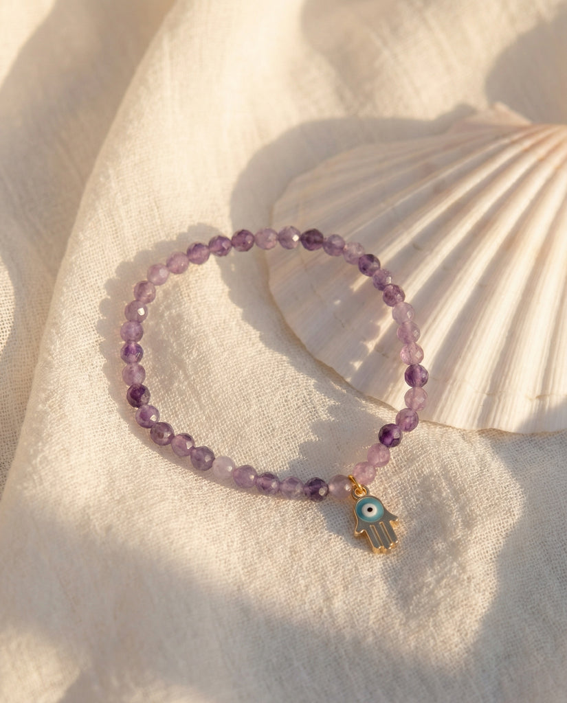 Amethyst promotes spiritual growth and protection. It enhances intuition, wards off negativity, and is beneficial for meditation and peace. Its purifying properties are linked to the crown chakra, fostering higher states of consciousness.