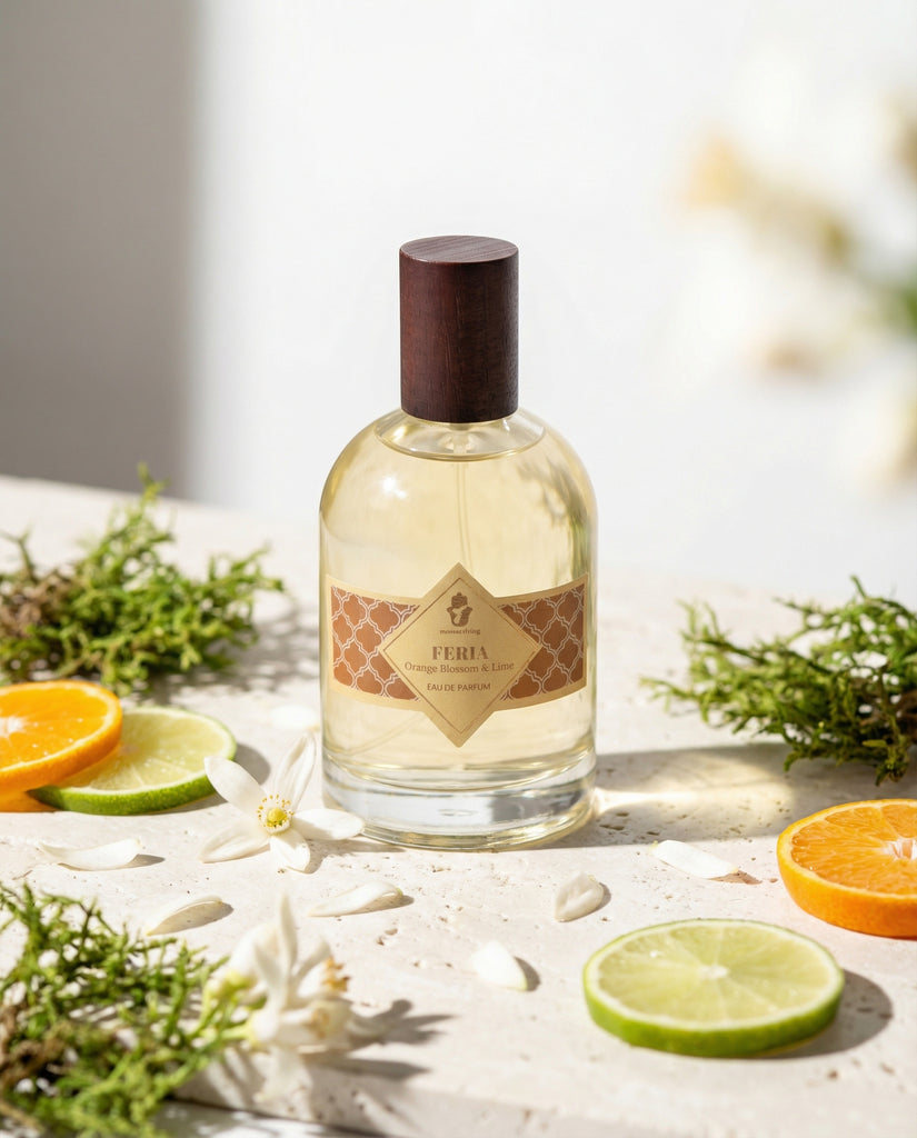 A refreshing fragrance where notes of neroli and orange blossom rest on a fresh base of moss with accents of labdanum and white tea and vanilla. This perfume evokes the summer festive season in Spain and the sweetness of flowering orchards and Mediterranean air.